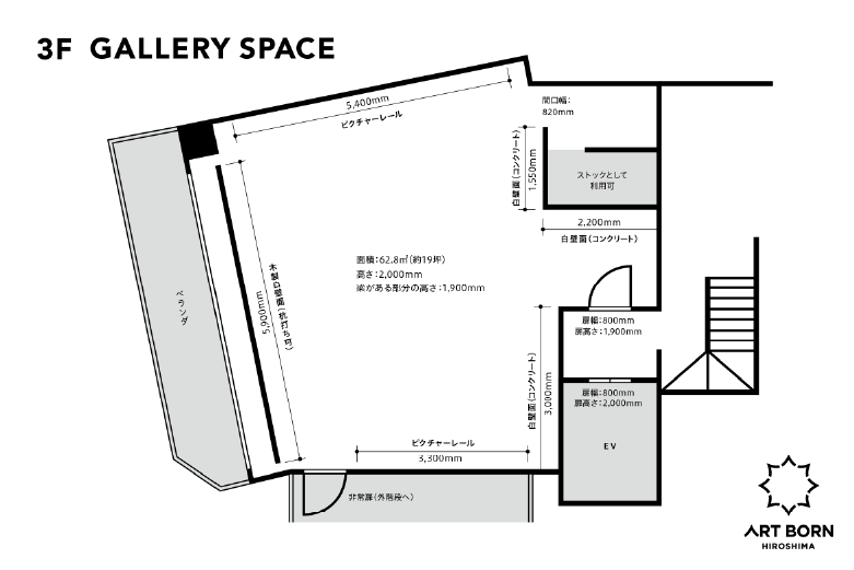広島の中心部、広電「銀山町」電停すぐの好立地にあるART BORN HIROSHIMAでは、3Fギャラリーを貸しギャラリーとしてご提供しています。作品展示を通して自己表現や発信の場として、個展・グループ展・アート企画にぜひご活用ください。
